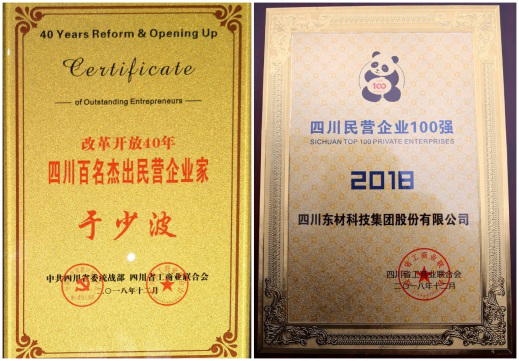 熱烈祝賀東材科技黨委書記、董事長于少波榮獲“改革開放40年四川百名杰出民營企業(yè)家”光榮稱號